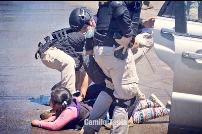 Y en efecto la rabia y la venganza represora por el juicio por el crimen del joven Camilo Catrillanca no solamente se ha desplegado contra la comunidad de Temucucuy: la propia madre, Teresa, y la viuda, Katy, del comunero asesinado han sido agredidas y retenidas de nuevo ahora (antes a la mamá la habían dejado ciega con los gases lacrimógenos en septiembre). Y la imagen de la hija de Katy y Camilo, Wakolda, con 7 años de edad, separada de su familia y detenida por los carabineros, ha recorrido penosamente las redes.