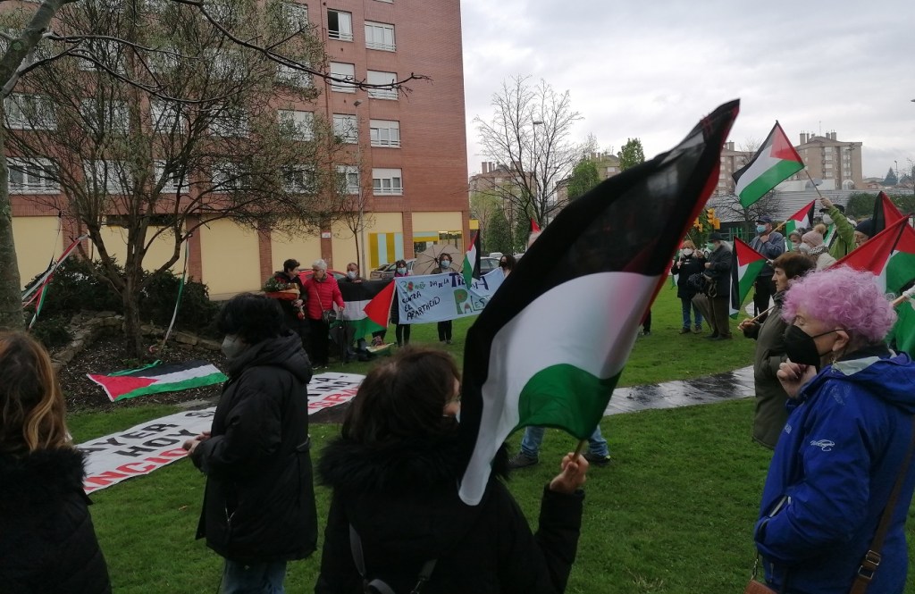 Palestina en Oviedo. (el mismo día en que un hecho consumista —¿de energía y de relato colonial?— colapsaba el tráfico en la capital astur.. pues ¿no tiene acaso supuesto origen lo de las luces navideñas en un lugar llamado Belén, actualmente ocupada ilegalmente por el ejército sionista?)
