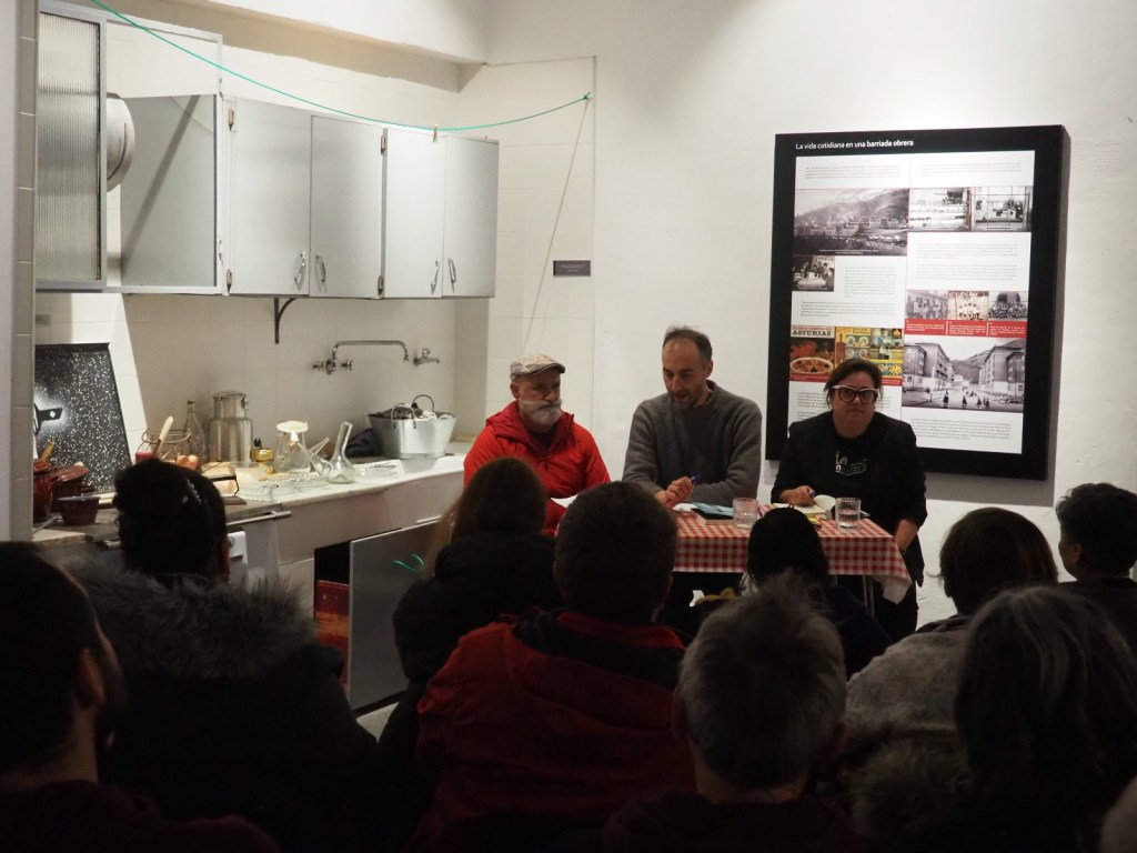 Aquí hemos laborado, aquí hemos aprendido de las solidaridades mineras, aquí hemos rechazado el franquismo, aquí hemos acompañado a las Madres de Desaparecidos en la asamblea de las 6 de la mañana, aquí hemos trabajado en el destajo, hemos aspirado los gases lacrimógenos de la policía en esa explanada, cuyas bolas destrozaban todas las ventanas de la casa de aseo, aquí ha habido vida y muerte, aquí han bajado al pozo una parte de mis familiares para saber cómo era la cosa, como precedente ¿no? de lo que ahora se normaliza como especie de turismo de aventura.