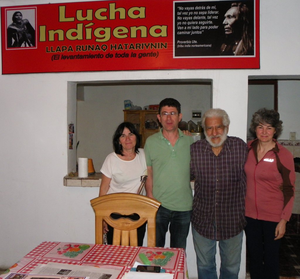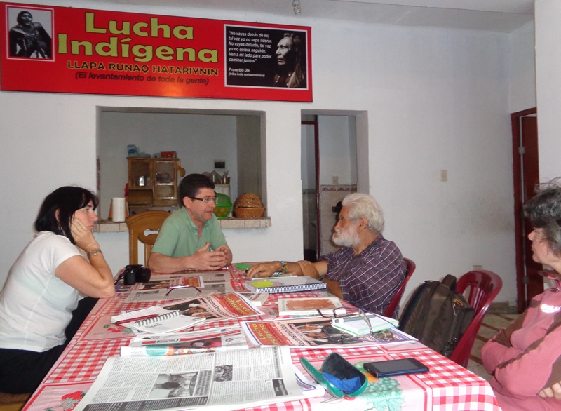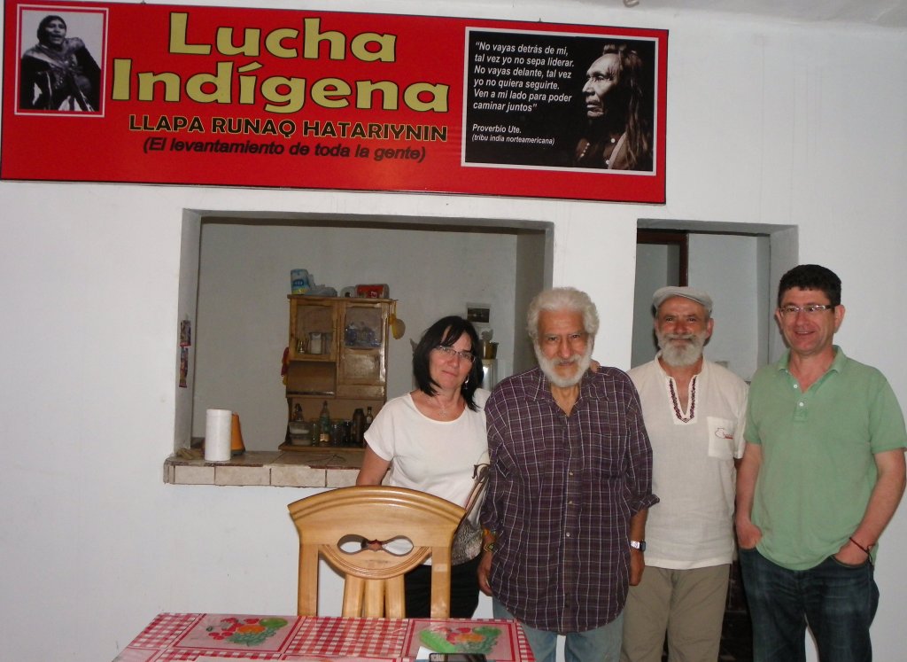 “Hugo Blanco nos recibe en una casa humilde llena de libros y ejemplares de ‘Lucha Indígena’ preparados para su distribución, se entusiasma por lo que comentamos del Foro Social PanAmazónico en Tarapoto (hacen falta nuevas rebeliones sin caudillos como en esos foros, apostilla)”.