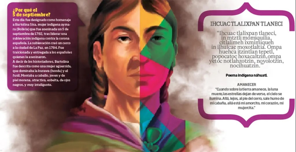 Bartolina Sisa fue asesinada el 5 de septiembre de 1782, hace 241 años. Su muerte fue violenta, en un intento colonial de aterrorizar a sus compañeras y compañeros rebeldes, como muestra la brutal descripción del oidor recuperada por Mendieta: “(…) que sacada del cuartel a la plaza mayor por su circunferencia, atada a la cola de un caballo con una soga de esparto al cuello, una coroza de cuero y plumas y una aspa afianzada sobre un bastón de palo, en la mano, y a voz del pregonero que publique sus delitos sea conducida a la horca y se ponga pendiente de ella, hasta que naturalmente muera y después se claven su cabeza y manos en picotas con el rótulo correspondiente, y se fijen para el público escarmiento en los lugares de Cruz Pata, Alto de San Pedro y Pampajasi, donde estaba acampada y (…) después de días se conduzca la cabeza a los pueblos de Ayo Ayo y Sapaaqui, de su domicilio y origen, en la provincia de Sicasica, con la orden de que se queme después de tiempo y se arrojen sus cenizas al aire donde estime convenir.”