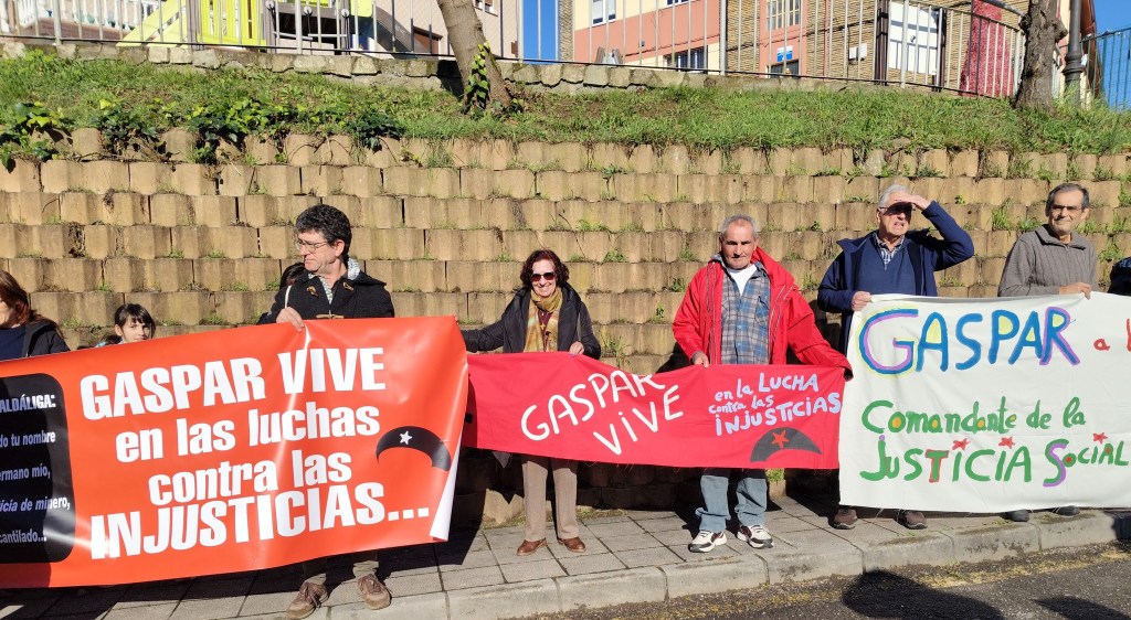 En memoria de Gaspar, declaramos nuestro compromiso con su coherencia radical: exigimos empleo y vivienda digna, combatiendo la precariedad laboral y la especulación inmobiliaria hasta que sean derechos reales; defendemos una transición ecosocial justa que revierta la insostenibilidad y beneficie a vulnerables, no a grandes capitales; se debe impulsar la solidaridad internacionalista contra injusticia global, deuda y guerra, haciendo ver la interdependencia que nos relaciona a todos como acción política. Proponemos a todos rechazar el militarismo destructivo y revitalizar Acciones por la Paz contra colonialismo y la dominación y asumimos la consigna de “gastos militares para derechos sociales” y que sea ella quien inspire las políticas y los compromisos para conseguir un orden más justo;
