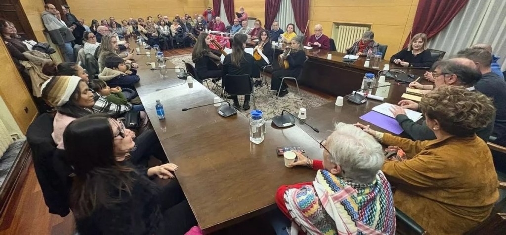 Lectura de poemas de Gaspar (ahora su libro Cantos de Amor y Guerra traducido al asturiano, en ‘Cantares d’amor y guerra’, por la poetisa Lourdes Álvarez y editado por l’Academia de la Llingua Asturiana ).