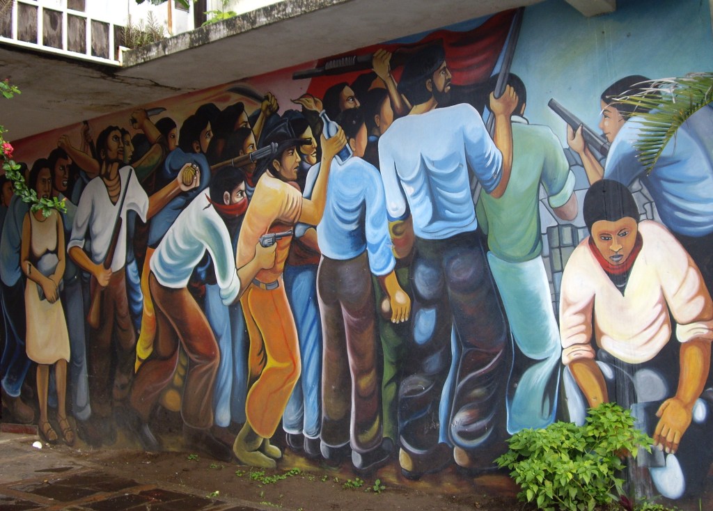 COSALes, comités de solidaridad con América latina, que enviaron a Nicaragua centenares de personas, en brigadas, en grupos de trabajo, a curiosear, a intentar acompañar una revolución tan inédita, a impregnarse de su ímpetu, a contrarrestar también la arremetida brutal del Norte, que con Reagan en la presidencia persiguió, destrozó, asesinó a mansalva a la población nicaragüense en cuya humildad veía una amenaza a sus privilegios imperiales.